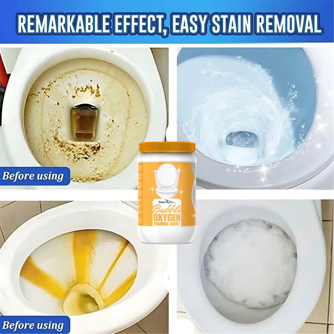 Bubble Oxygen Foaming Agent is a revolutionary toilet cleaning powder that uses oxygen-based foaming action to clean, deodorize, and sanitize your toilet β without any physical effort. Just pour the powder, let the bubbles work their magic, and flush. No need for brushes, gloves, or harsh scrubbing.