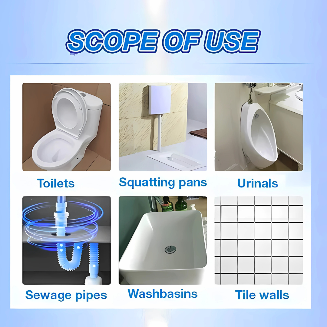 - Non-corrosive and safe for all toilet types and plumbing systems.